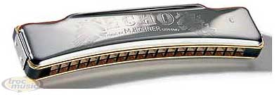 Harmonica Echo Octave Cintré 20 trous, tonalité do (C), 40 lames. Sommier bois. Dimensions 15,3 cm.