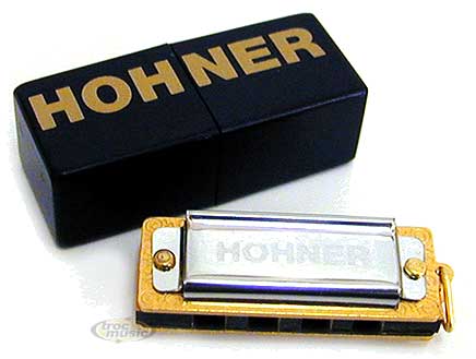 Harmonica miniature 4 trous, 8 lames, 35 mm, corps poirier.