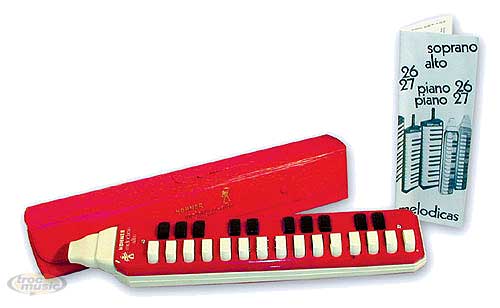 Mélodica boutons 25 touches. Tessiture Fa 3 - Fa 5. Livré avec étui, notice d'utilisation et bec. Coloris Rouge.