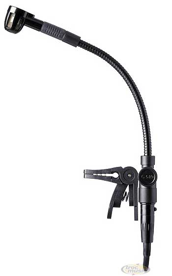 Version du C519M équipée d'un mini XLR pour B29L, MPAVL ou émetteur PT40/PT450/PT4000. Livré avec la platine d'adaptation A400 permettant l'accroche de l'émetteur de poche PT40/PT450 au niveau du microphone.