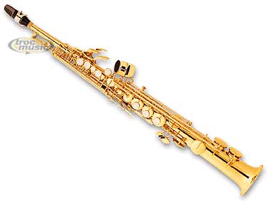 Sax soprano d'étude, livré avec un bec et étui rigide sac à dos. Support pouce réglable. Clé de Fa dièse aigu. Bocal solidaire. Bascule Si / Do dièse.