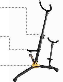 Stand double pour saxophone baryton et saxophones alto ou ténor.