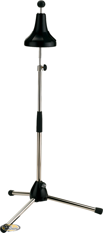 Support trombone basse - hauteur 650-1140mm. Cône en bois recouvert de feutre antichoc. Pied style ''pied de micro'' antidérapant. Poids : 2.2 kg - H : 650/1140mm.