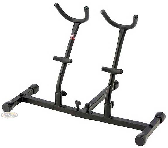 Stand double pour saxophones. Construction en métal, stable, avec support pour 2 saxophones alto/tenor. Poids 1,6 kg.