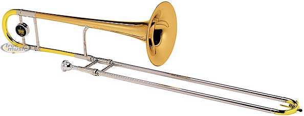 Trombone ténor simple professonnel, pavillon en cuivre rose, livré en étui avec une embouchure.