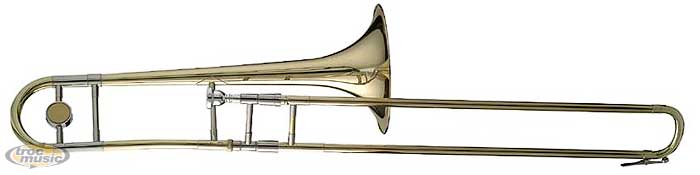 Trombone à coulisse tenor en sib, large perce, avec étui en ABS. Coulisse intérieure chromée, pavillon 215 mm, perce 13,9 mm. Finition verni.