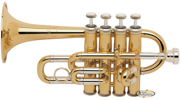 Trompette piccolo professionnelle vernie, en Sib/La. Livrée en étui avec une embouchure.