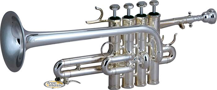 Trompette piccolo Sib/La Pro (argentée). Un des modèles les plus joués par les professionnels, excellente construction, un son précis et solide. Livrée sans étui ni embouchure. 4 Pistons.