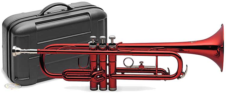 Trompette en sib couleur rouge, avec étui en ABS. Pistons en inoxydable. 1ère et 3ème coulisses mobiles avec bouchon baise. Pavillon 125 mm. Perce 11,66 mm.