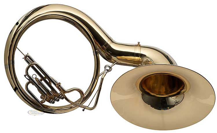 Sousaphone en Sib, 3 pistons, avec étui. Corps en laiton. Coulisse en maillechort. Finition vernis. Livré avec embouchure. Pavillon 660 mm. Perce 16 mm.
