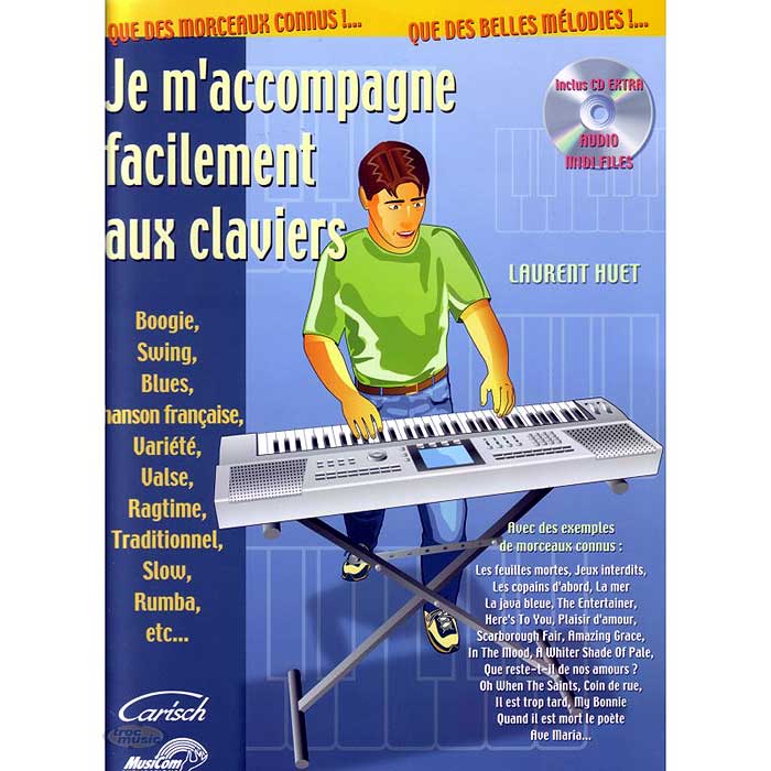 | Boogie, swing, blues, chanson française, variété, valse, ragtime, traditionnel, slow, rumba, etc. Cette méthode s'adresse aux nombreuses personnes qui veulent apprendre à jouer d'un clavier avec boite à rythmes et accompagnements ( piano électrique, électronique, etc ). Les notes des mélodies ainsi que les accords, sont chiffrés. |