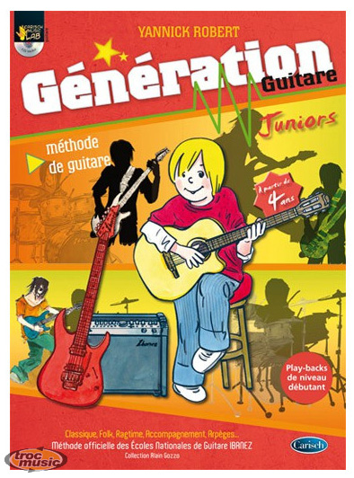 Méthode guitare pour enfant à partir de 4 ans. Axé sur divers styles, mette méthode initiera le jeune guitariste aux techniques de base et à l'accompagnement, lui permettant de rapidement progresser et de jouer en groupe, puis de logiquement évoluer avec les autres ouvrages de la collection '' Génération ''.