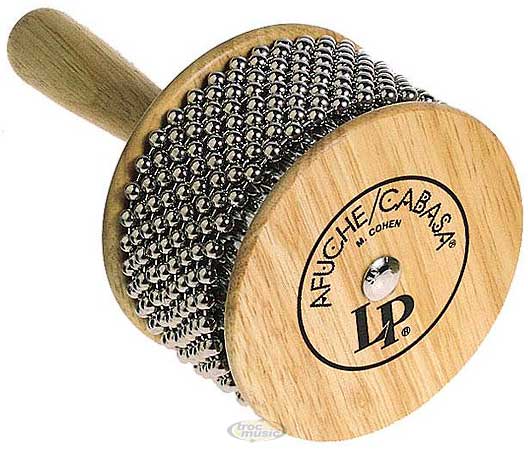 Afuche cabasa standard, naturel. Structure et manche en bois. Construction avec chaines sans fin en acier fixées.