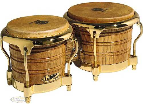 Bongos LP Galaxy Giovanni. Frêne nord américain. Cerclages Comfort Curve II. Cerclages de fond en aluminium moulé. Peaux naturelles 7 1/4'' et 8 5/8''.