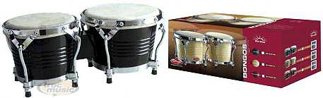 Bongos latins en bois 8,5'' et 7,5'', couleur: noir.
