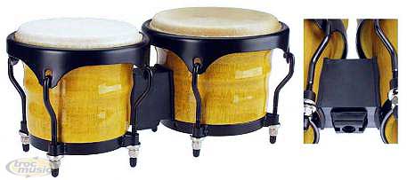Paire de bongos 7,5'' et 6,5'' en bois vernis.