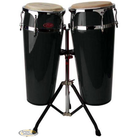 2 x Tambour latin 10'' (25,5 cm)/11''(28 cm) avec stand réglable 80cm à 1m, couleur: noir.