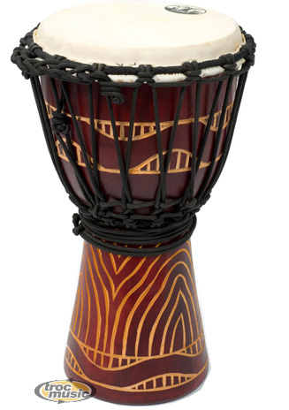 La finition des Djembés Slammer est irréprochable. Sa fabrication à la main lui fait bénéficier d'un son de qualité avec un large spectre sonore, mais également d'un esthétisme terriblement efficace. Acajou d'Indonésie. Peau de chèvre. Tension avec cordage traditionnel. Poignée de transport intégrée au cordage. Diamètre: 30 cm (12''). Finition: Rouge ou Noir.
