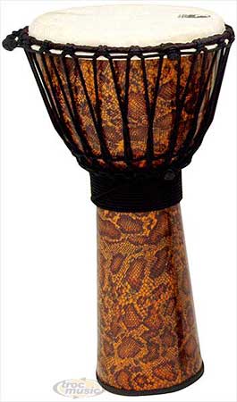 Djembé 12'', fibre, peau de chèvre, tension avec cordage traditionnel, poignée de transport intégrée au cordage.