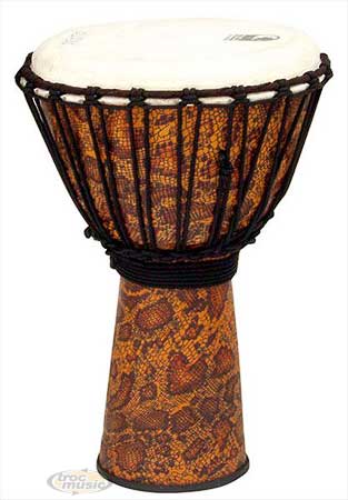 Djembé Synergy Freestyle 9'', fibre PVC, peau de chèvre, cordage traditionnel avec poignée.