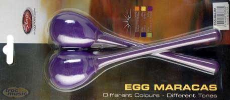 Paire de maracas oeufs à long manche, 25g, en plastique violet.