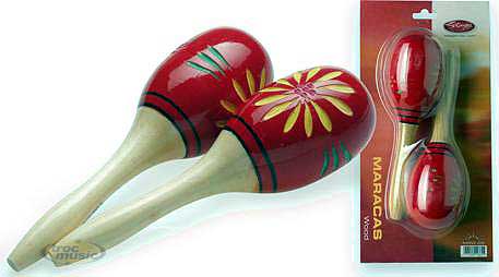 Paire de maracas bois 26cm, forme ovale, rouge.
