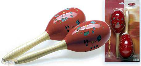 Paire de maracas bois 29 cm, forme ovale, rouge.