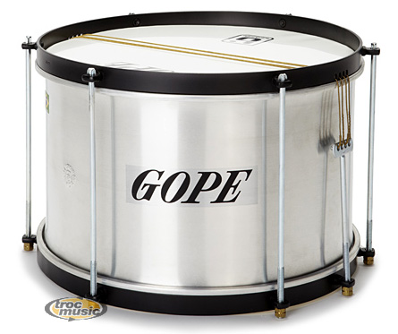 | Caixa fût aluminium 12'' x 20cm. La caixa est une caisse claire principalement utilisée dans les batteries de samba au Brésil. Le Timbre est constitué d'un simple fil d'acier ou de cordes de guitare tendues en travers de la peau synthétique bien tendue, ce qui lui confère un son sec. Elle sert d'accompagnement en assurant une rythmique continue,une phrase répétitive qui assure le tempo de la ''Bateria''. |