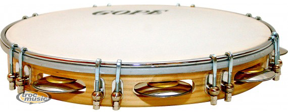Pandeiro Bois Pagode : 10, 11 ou 12''. Le pandeiro est un tambourin recouvert d'une peau fine muni de petites cymbalettes insérèes dans le cadre en bois de l'instrument. La sonorité idéale se traduit par un ton chaud ainsi que par un son sec et cristallin pour les cymbales. Un bon pandeiro reproduit tous les sons de la section instrumentale. Il se différencie du tambourin classique par son unique rangée de cymbalettes.