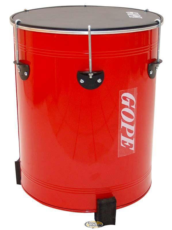 Surdo Sambinha 14 x 45cm. Surdo aluminium recouvert d'une peinture époxy. Couleur = Rouge. 6 tirants en acier zingué et un arceau fin recouvert d'une peinture époxy noire. Diamètre = 14'' / Hauteur = 45 cm / Poids = 3.3 Kg. Peaux Napa 12'' noire. Livré avec 3 pieds en mousse servant à le poser à terre en laissant une sortie au son.
