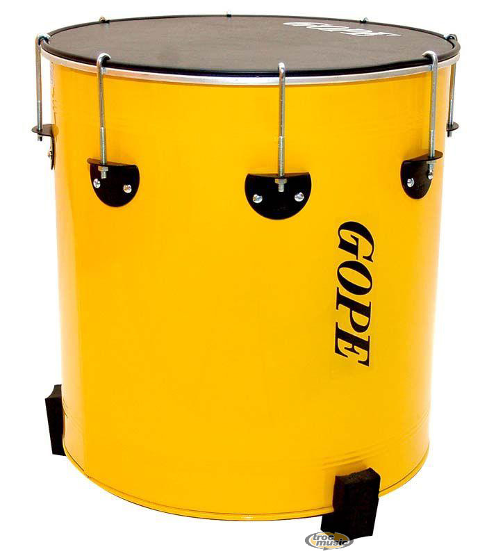 Surdo Sambinha 16 x 45cm de fabrication brésilienne. Surdo aluminium recouvert d'une peinture époxy. Couleur = Jaune. 8 tirants en acier zingué et un arceau fin recouvert d'une peinture époxy noire. Diamètre = 16'' / Hauteur = 45 cm / Poids = 3.850 Kg. Peaux Napa 16'' noire. Livré avec 3 pieds en mousse servant à le poser à terre en laissant une sortie au son.