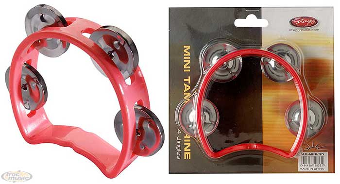 Mini tambourin en plastique rouge avec 4 cymbalettes.