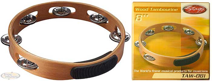Tambourin bois sans peau 8'' avec 1 rangée de cymbalettes.