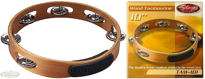 Tambourin en bois sans peau 10'' avec 1 rangée de cymbalettes.