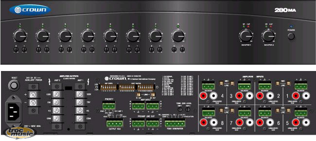 Ampli/mélangeur 8 entrées 2x80w/4 Ohms ou 100v.