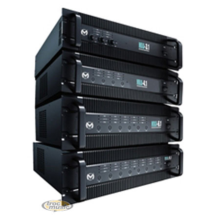 Multi-canaux 6 sections larges bandes avec coupe bas à 80 Hz débrayable et switch link de la première voie. Canaux bridgeables 2 à 2. 6x220W / 4, 6x150W / 8.