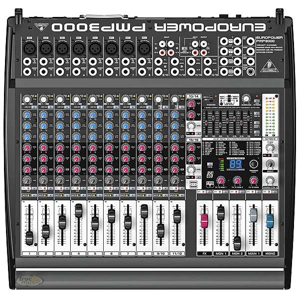 Console spectacle stéréo ultra compacte de 2 x 600 Watts (1200 Watts bridgé) avec 16 canaux, multi-effet et système FBQ de détection de larsens.