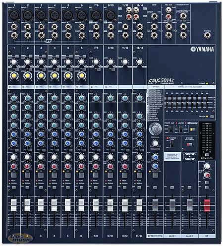 Table de mixage amplifiée de type console, 500 Watts stéréo, effets, égaliseurs graphiques et compresseur intégré.
