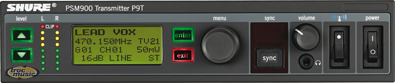 Ear monitors - série PSM900 - émetteur. Bande Q15 - 750 à 790 Mhz. Emetteur Ear Monitor stéréo simple. Livré avec kit de montage en rack simple et double, antenne 1/2 onde et transfo d'alimentation PS41E.