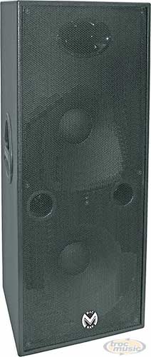 Enceinte bass-reflex trapézoïdale polyvalente 2 voies 600W sous 4 Ohms. Boomer 38cm et moteur 1'' type dôme à pavillon ovale.
