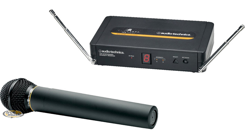 Microphone dynamique unidirectionnel à main de la série 700. Emetteur à main équipé de réglage variable, sélecteur de canal interne, indicateur de batterie/alimentation en couleur. Fonctionne avec deux piles 1,5V AA. Livré avec pince AT8456a.