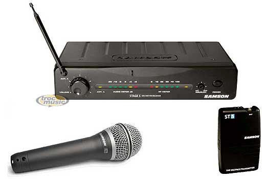 Système sans fil 3 en 1 : instrument + serre tête + cravate. Kit complet comprenant un récepteur SR5, un émetteur ceinture ST5, un micro cravate LM5, un micro serre-tête ainsi qu'un câble pour la guitare électrique.