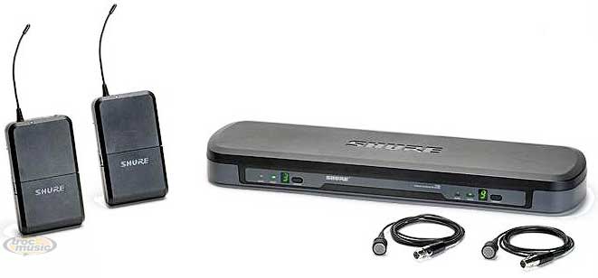 Système de micros sans fil destiné aux conférenciers et comédiens. Composé d'un récepteur double PG88E, de deux émetteurs ceinture PG1 et de deux micros cravate statique cardioïde PG185.