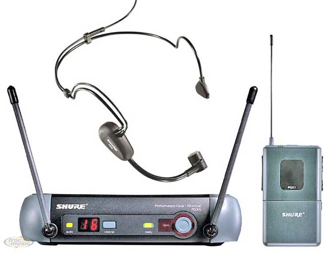 Système UHF pour animateur, DJ, musicien, composé du récepteur diversity PGX4, émetteur ceinture PGX1 et micro sur serre-tête cardioïde PG-30.