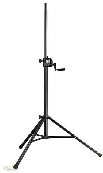 Pied d'enceinte à crémaillère, télescopique. H: 1385-2180 mm. Charge max 50 kg. Tube d'extension avec filetage M10 intégré. Poids 8,6 kg. Finition noire.