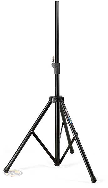 Stand enceinte pro télescopique en aluminium, finition noire, hauteur maxi 182 cm, poids maxi 50 kg, diamètre standard 35 mm.