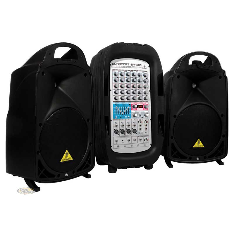 Système de sonorisation 8 canaux compact et portable de 900 Watts. Dimensions : 660 x 354 x 883 mm, poids : 31 Kg. Accessoires inclus: micro XM1800S, pinces, câbles (6 m).