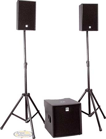Système compact amplifié 2000W. Satellites 2x 400W RMS / Classe D. Caisson de basses 1200W RMS / Classe D.