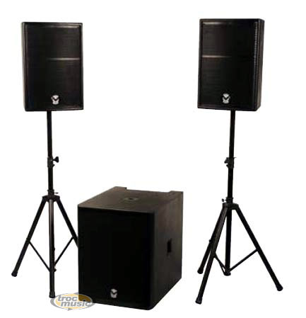 Système Triflex actif pour salles 400/600 personnes, puissance totale de 800W, 2400W crête composé de : 1 caisson AS15SUB autonome et 2 satellites AS 10.