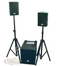 Sonorisation complète, table de mixage incorporée 4 voies, gain, égaliseur 2 bandes, volume, PAN, effet intégré avec master time et repeat, volume pour le caisson et les satellites. Caisson boomer 25cm 150W, satellites 75W impédance 4 ohms HP 6,5'' et tweeter à dôme.